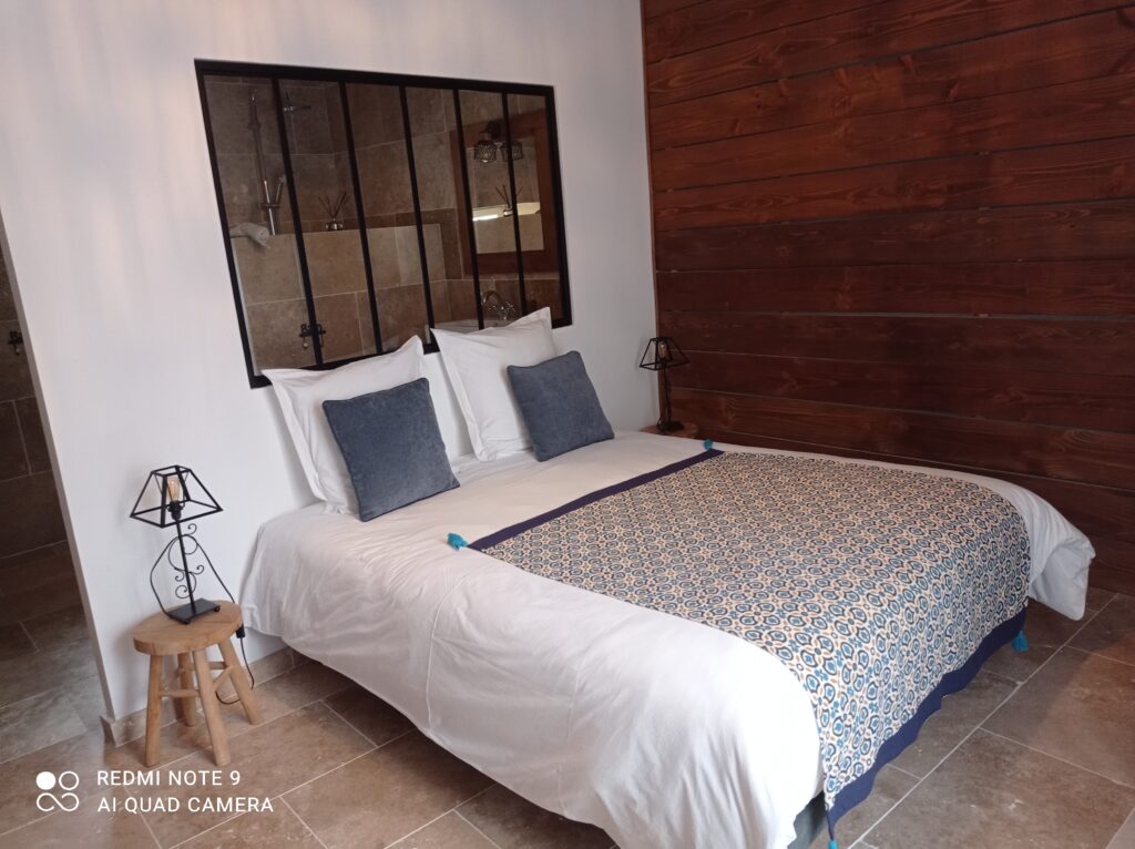La chambre Bonheur se compose d’un lit 160×200, d’une salle de bain et d’un WC indépendant.